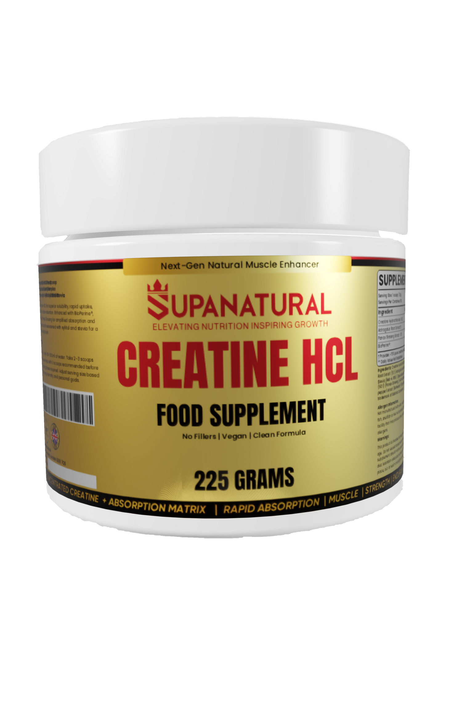 Experience the cleanest, most effective form of creatine. SUPANATURAL Creatine HCL delivers ultra-pure creatine hydrochloride for superior solubility, rapid uptake, and zero bloat or water retention. Each scoop provides 847 mg of creatine HCL, supported by a natural absorption complex of Astragalus and Korean Ginseng, plus BioPerine® for maximum bioavailability.